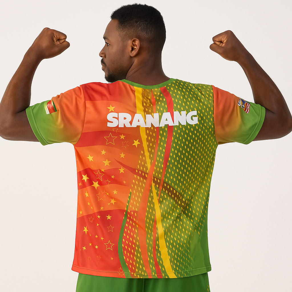 Het shirt is voorzien van gesublimeerde prints van de Surinaamse vlag op de borst, rug en mouw. De levendige kleuren blijven mooi, zelfs na intensief gebruik en wassen.