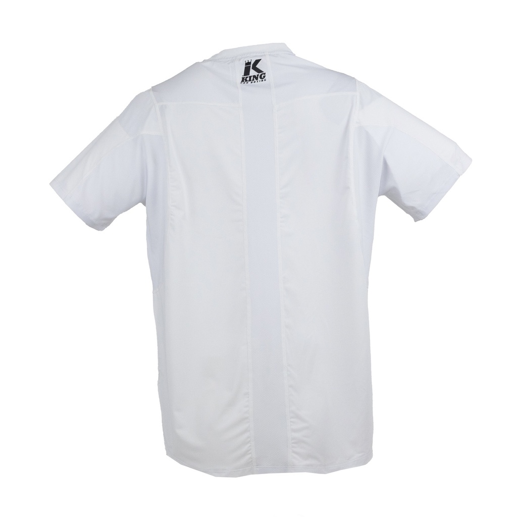 De Apex Pro Tee heeft een atletische pasvorm die het lichaam accentueert zonder te strak te zitten. De zachte, ademende stof voert vocht efficiënt af, zodat je koel en droog blijft, zelfs tijdens de zwaarste trainingen. Het King Pro Boxing-logo op de borst en rug staat symbool voor kracht, kwaliteit en vechtsporttraditie.